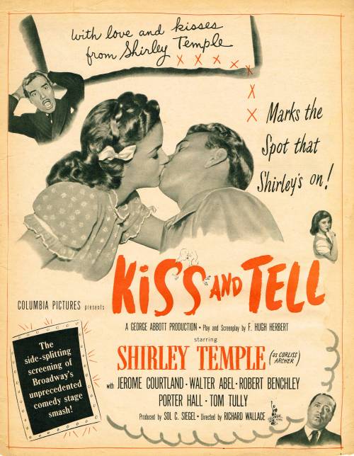 Kiss and Tell is also the name of a 1945 comedy film directed by Richard Wallace and starring Shirley Temple in the lead role of Corliss Archer. It was based on a 1943 Broadway play by F. Hugh Herbert, in turn based on his Corliss Archer short stories; Herbert wrote the screenplay to the film. The movie is about two teenage girls, and the trouble that ensues in their families when they become interested in boys, just as there are ructions when Rory gets a boyfriend.