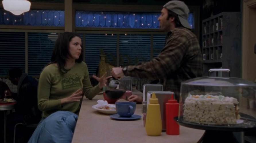 LORELAI: Tonight’s my parents big Christmas celebration. There’s good food, these amazing apple tarts, big tree. It’s the only holiday I actually enjoy going over there for, and this year I’m uninvited.
