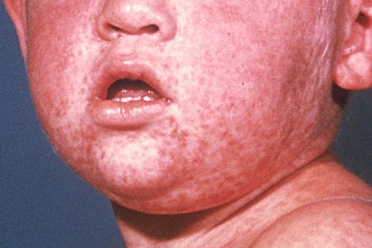 Measles is a highly contagious viral infection causing fever, cough, runny nose, inflamed eyes, and a red rash. It can be fatal. Madeline must be vaccinated against the disease or she would have it herself, and the household should have been quarantined so that Madeline shouldn’t be (and possibly isn’t) living at home while her brother is infectious.