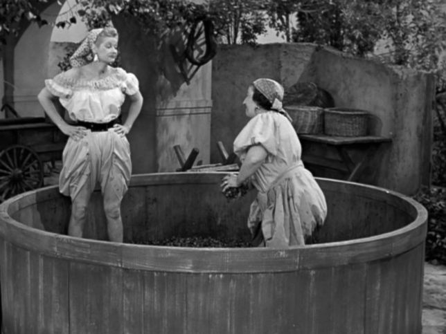 The popular idea of grape stomping being part of the winemaking process can probably be traced back to I Love Lucy. In the 1956 episode Lucy’s Italian Movie, while on a trip to Rome a film producer suggests Lucy audition for his new movie called Bitter Grapes. Lucy thinks it must be about winemaking, so finds the only winery left in the area that still makes wine using grape-stomping so she can practice the technique in advance.