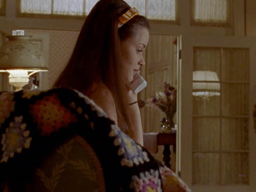The show tries to make it look as if Rory is sitting in the nude waiting for Dean, even though that doesn’t make any sense. Why would you get naked (while wearing a hair band) while waiting for your boyfriend to come over, especially if you’re not sure he’s even coming? Wouldn’t you look pretty silly if (for example) your mother who lives next door popped over to see how you were getting on in the meantime? And isn’t it kind of gross to sit on your neighbours’ furniture in the nude while they’re away?