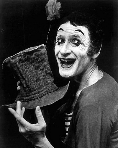 Marcel Marceau, born Marcel Mangel (1923-2007) was a French actor and mime artist, who called mime “the art of silence”. He was most famous for his stage persona of Bip the Clown, who wore a striped jersey and opera hat. Marceau performed for more than 60 years, winning multiple awards, and helping to inspire the dance style of Michael Jackson.