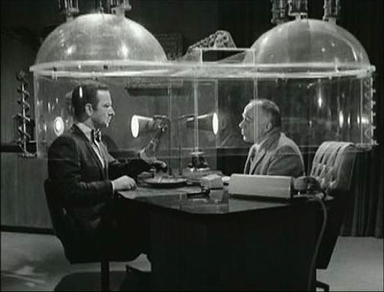 A running gag on the show was the Cone of Silence – two clear plastic hemispheres which were lowered over Max and the Chief’s heads as a security protocol. They were supposed to render their conversations completely silent to onlookers, but constantly malfunctioned so that they usually ended up shouting loudly at each other while outsiders could hear better that they, and not infrequently had to explain to both what the other was saying.