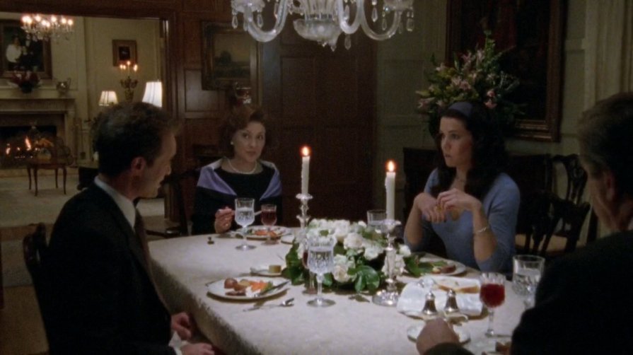 Lorelai and Richard both make almost the same snarky comment in response to Emily. You can see that despite their past differences, they are really bonding over despising Chase.