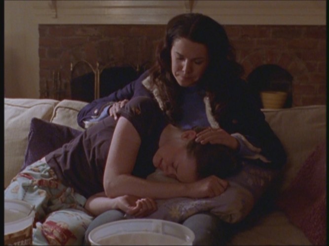 It is now Lorelai’s turn to comfort Rory, just as her daughter comforted her when she broke up with Max a couple of months ago. Lorelai cannot tell Rory that she is back with Max, as her daughter is too distraught about her relationship ending.