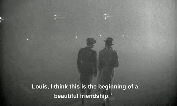 When the corrupt prefect of police Louis Renault (Claude Rains) tries to arrest Victor, Rick forces Renault to instead assist Victor and Ilsa to escape by holding him at gunpoint. At the last moment, Rick makes Ilsa leave with her husband. Louis suggests to Rick that they join the Free French in Brazzaville, in the Congo, and in the final scene Rick says, “Louis, I think this is the beginning of a beautiful friendship”.