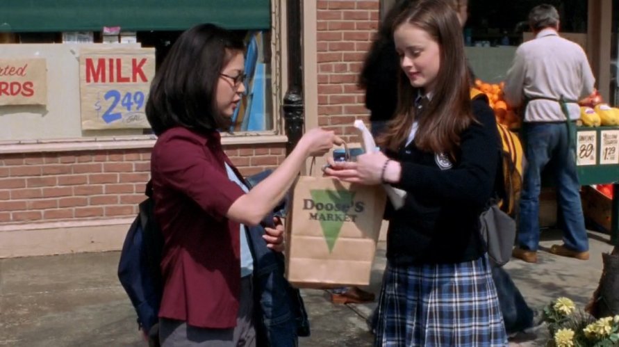 Lane goes into the supermarket for Rory and does her shopping – she needs chewing gum, soda, a copy of The New Yorker, and dental floss. She lets Rory know that Dean is not in the store, so we know that the day is a Wednesday – most likely Wednesday 18 April.