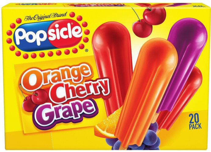Popsicle is an American brand name for those sweet frozen snacks on a stick that might otherwise be known as ice pops, ice lollies, ice blocks, or icy poles. Popsicles were invented at the turn of the 20th century, and first manufactured in the 1920s. The brand is now owned by Unilever. Popsicles are easily fairly broken in half in order to share.