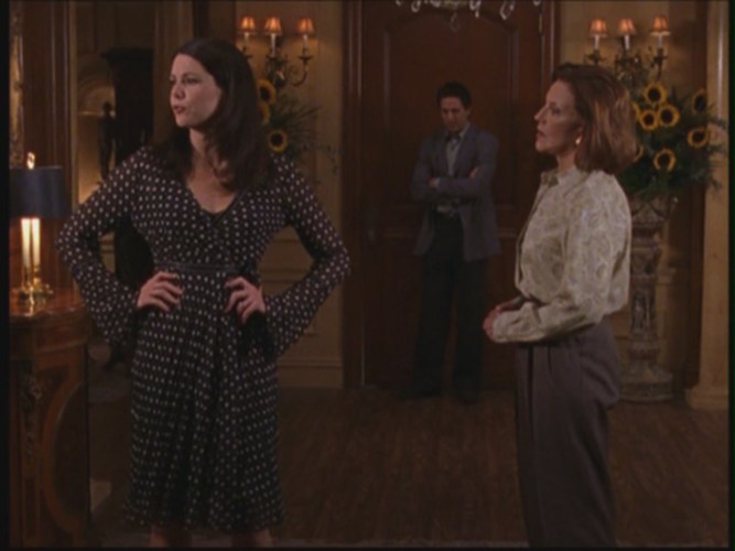 Poor Max is left to stand uncomfortably by the door, unwelcome and completely unacknowledged by Lorelai and Emily while they have their fight. It’s an inauspicious meeting with his prospective mother-in-law, and demonstrates he is little more than a sideshow in Lorelai’s life.