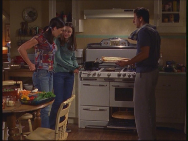 We are treated to a scene where Max cooks dinner for the Gilmores in Stars Hollow; he has already been shown to be an excellent cook earlier in the show. There are comic bits to demonstrate how quirkily undomesticated the Gilmore girls are – Lorelai cuts Max with a knife any time she tries to help cook, and neither Lorelai nor Rory can identify their own broiler (grill), even being alarmed to find it is “on fire”. Rory finds the smell of food cooking to be “weird”, in a good way.