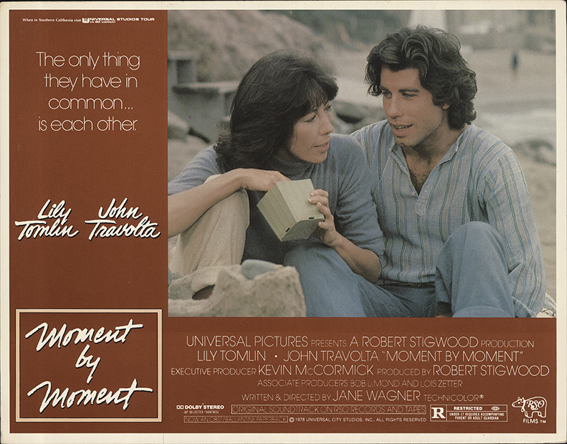 Lorelai is referring to the 1978 romantic drama Moment by Moment, directed by Jane Wagner. It stars Lily Tomlin as a wealthy middle-aged Beverly Hills socialite, and John Travolta as a young drifter. He becomes infatuated with her, and they embark on a rocky May-December romance. The film was widely panned by both critics and audiences. It remains a camp classic to this day – exactly the sort of film Lorelai couldn’t resist watching.