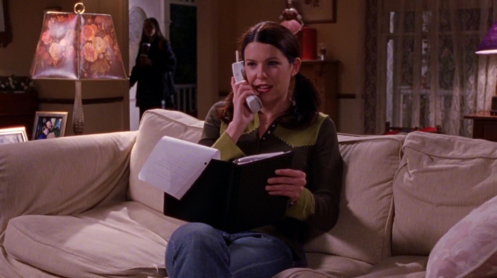 LORELAI: Aunt Bobbie, hi. It’s Lorelai, Richard and Emily’s girl. Um, I’m the one with . . . yeah, that’s right. Wow, you don’t hear the word “wedlock” much any more.