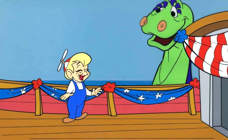The helicopter beanie comes from the 1962 animated television show Beany and Cecil, based on the puppet show Time For Beany (1949-1955). Beany was a cherubic-faced blonde boy who wore a cap with a propeller on it that allowed him to fly, and as a result, similar caps became popular marketing novelties. Beany and Cecil had a revival in 1988, The New Adventures of Beany and Cecil, by the same people who made Ren and Stimpy.