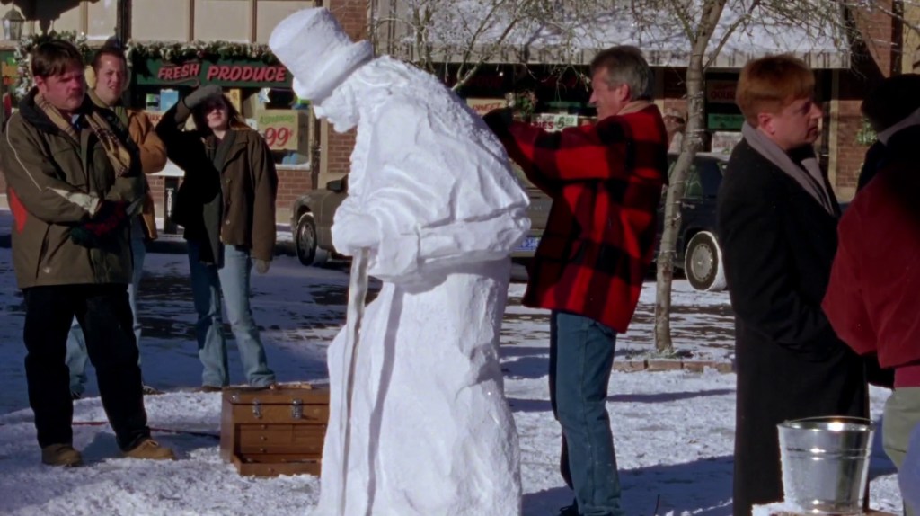 Although Lorelai is being deliberately preposterous, it does seem a little mean for such an experienced competitor to enter a local contest in a small town, especially when there isn’t even a large prize to act as an incentive. He isn’t actually building a snowman anyway – he’s creating an ice/snow sculpture, which is a different entity. I feel as if he should be disqualified.