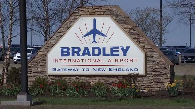 Bradley International Airport is in the town of Windsor Locks, about fifteen minutes drive north of Hartford. Originally a World War II military airfield, it opened as a civilian international airport in 1947. It’s the major airport for the Hartford region, and the one that the characters all presumably use when they need to catch a flight anywhere.