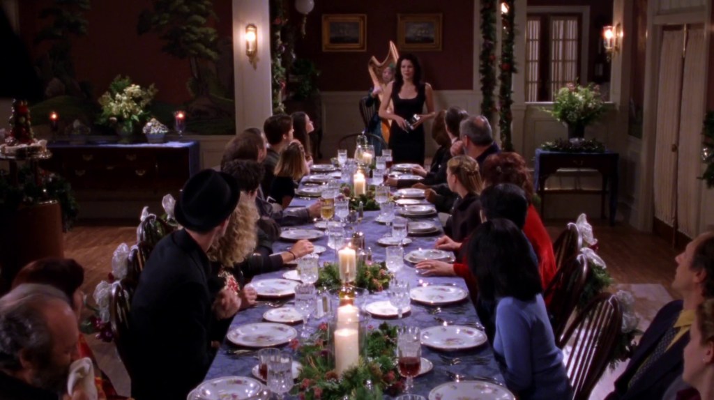 LORELAI: Uh, now, ladies and gentlemen, damen und herren, um, the moment you’ve been waiting for, I give you the Bracebridge Dinner.