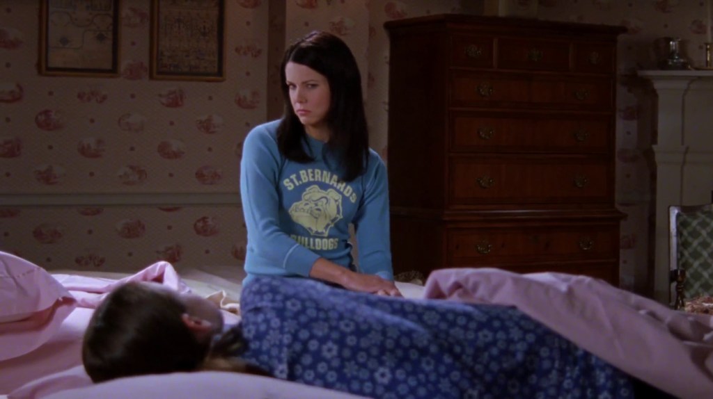 It is now revealed that Lorelai never told Rory that Christopher rang, inviting her to stay in Boston for a couple of days during the Christmas holidays. As is often the case with Lorelai, she’s being quite unreasonable by insisting that she has dibs on Christmas, when Lorelai has dibs on Rory every day of every year! It’s quite normal for children of separated parents to spend major holidays with the parent they don’t live with, and Christopher was only asking for a couple of days out of a school holiday break that lasts for weeks.