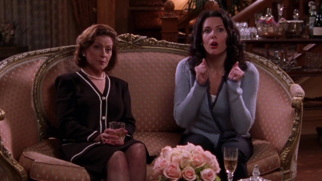LORELAI: Oh, oh. Well, uh . . . ugh, why don’t we move Aunt Cecile? She was always so annoying at parties. She loved the knock-knock jokes.
