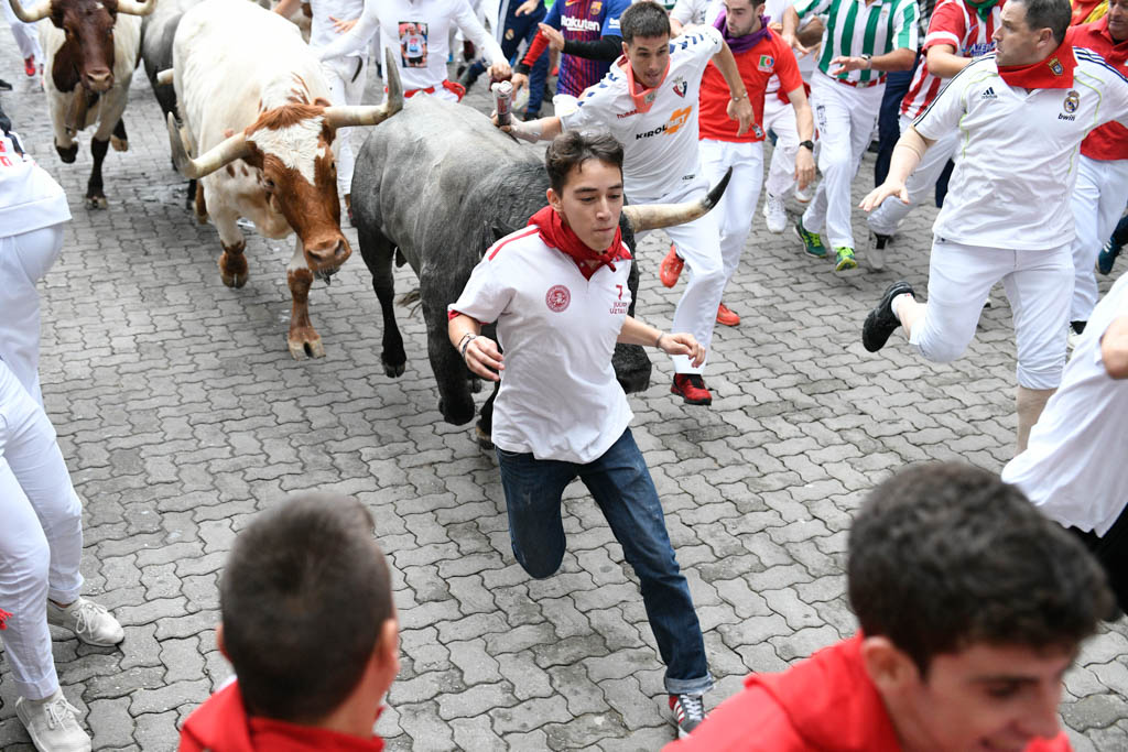 A running of the bulls is an event where participants run in front of a small group of bulls through sectioned off streets. The most famous one is is Pamplona, Spain, which takes place at the San Fermin Festival in July each year. The running of the bulls begins at 8 am, and participants must be over 18, not incite the bulls, and cannot be influenced by alcohol. By tradition, participants wear white shirts and trousers with a red kerchief. There are six bulls and nine steers to encourage the bulls. Every year, between 50 and 100 people are injured during the running of the bulls. Since 1910, 15 people have been killed, nearly all by being gored to death.