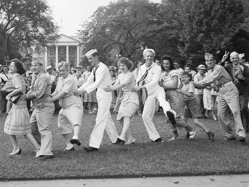 A conga line [pictured] is a novelty carnival dance from Cuba which became popular in the US in the 1930s. The dancers form a long procession in a line, with three shuffle steps, then a kick. It was mistakenly thought to be an African dance from the Congo, hence the name.