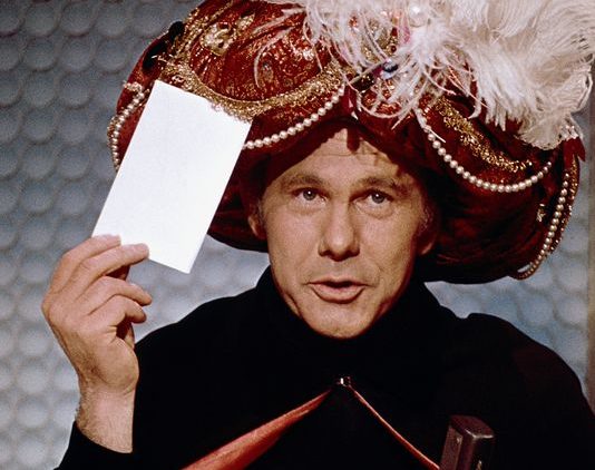 The humour would come from an unexpected question which followed a seemingly straightforward answer. For example, Carnac would give the answer, “Sis boom bah”, and the question would be, “Describe the sound made when a sheep explodes”.