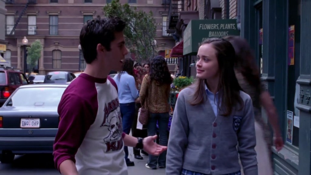 A serious statement masquerading as a joke. Jess truly has been hurt by life, and he’s probably also been hurt by Rory, and her efforts to keep him at bay and continue seeing Dean, even as it became increasingly clear that she didn’t really want him any more. Jess comes this close to saying, “You’ve hurt me before”. Don’t worry Jess – Rory has more emotional pain in store for you!