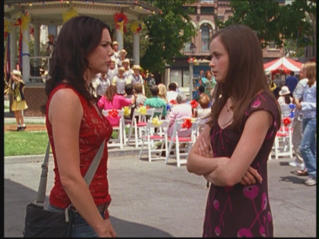 Lorelai and Rory not only get into a fight in public at the festival, Lorelai gets perilously close to calling her seventeen-year-old daughter a “bitch” or a “dog” with her barb about grabbing a liver treat and a squeaky toy. She seems to suggest that Rory is acting like a “bitch in heat” over Jess, or is acting like a “dog” towards Dean.