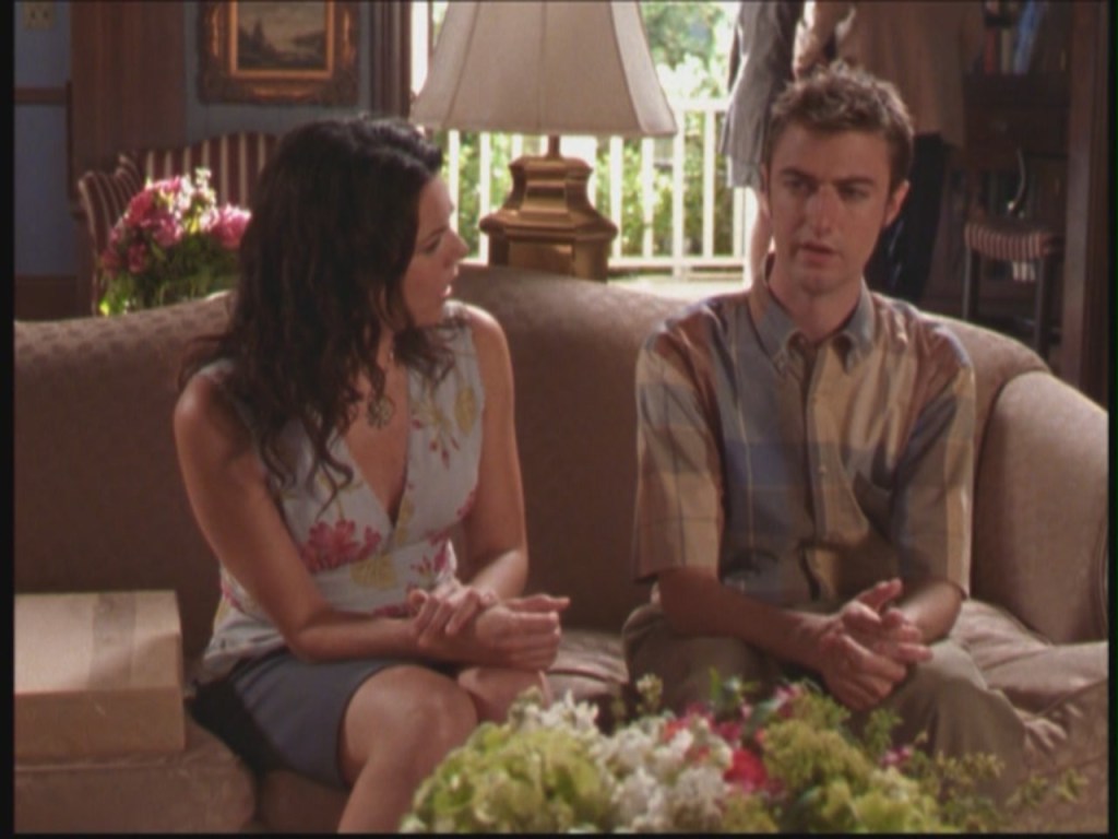 Lorelai has been through a lot of relationship angst lately, and the show now gives her a bit of comic relief in this area when Kirk asks her for a date while delivering a package to the inn. We know that Kirk is very lonely, and has been actively seeking a girlfriend at least since Sookie’s wedding (he is delivering her wedding photos, as a little reminder). It’s a chance for Lorelai and Rory to later joke about Kirk being Rory’s stepfather – this is the second time Rory jokes about Lorelai marrying Kirk.