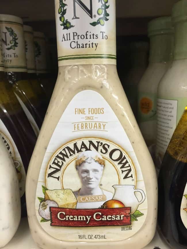 Luke is saying he doesn’t make his own salad dressing, he is using a bottle of Newman’s Own dressing, a brand of condiments and foods founded by Hollywood star Paul Newman and author A.E. Hotchner in 1982. The company, headquartered in Westport, Connecticut, donates 100% of its after-tax profits to the Newman’s Own Foundation, a private non-profit foundation which supports various charitable causes – one of them is the SeriousFun Children’s Network, residential summer camps for seriously ill children all over the world, which Newman co-founded in 1988.