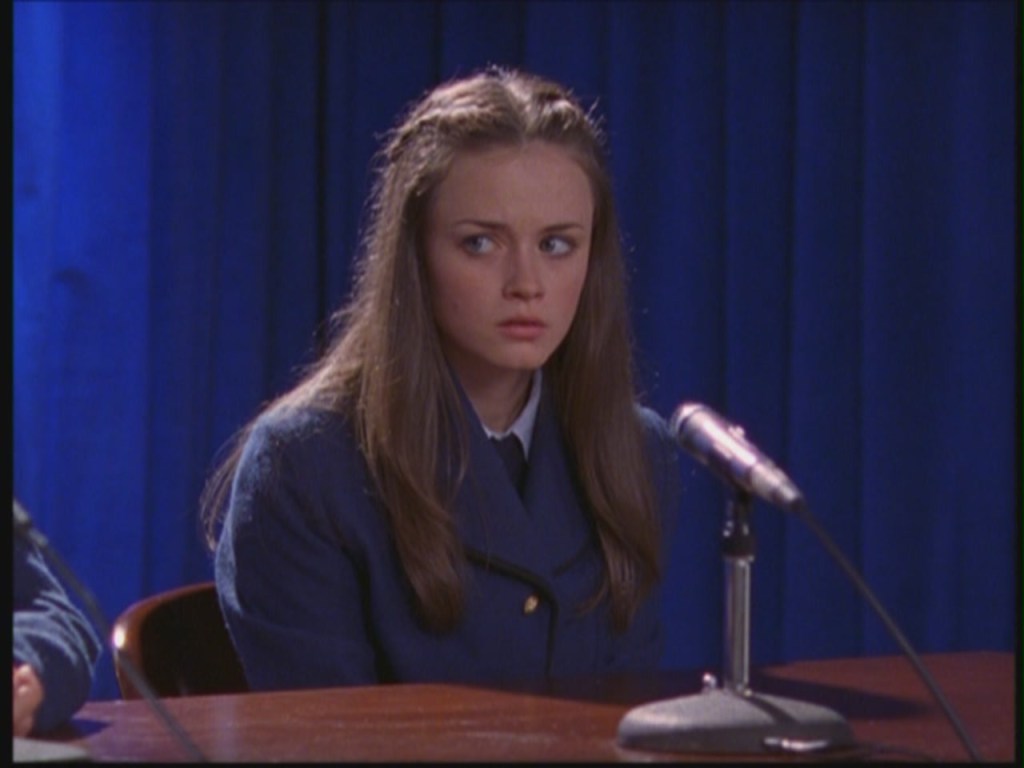 Rory looks increasingly unhappy throughout this scene, as her path to Harvard now looks far from certain. She now has – application anxiety!