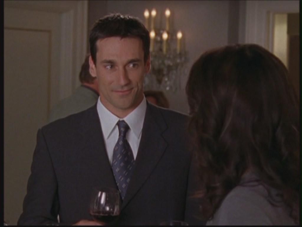 While attending her mother’s charity auction, Lorelai runs into an attractive man at the bar, and takes an immediate shine to him. Although they don’t exchange names or details, Lorelai will later discover his name is Peyton Sanders. They go on a date together, but despite their initial attraction, Lorelai discovers that Peyton is a world-class bore and they have nothing in common except (apparently) both liking David Bowie.