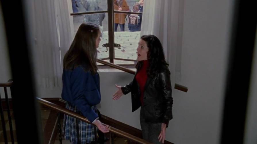 LORELAI: Oh hey, my crazy, stupid rules are the reason we’re doing so good in our lives. They’re the reason you grew up the way you did, the reason you’re even in this school, and the reason you’re going to go to Harvard, so don’t you dismiss my rules.