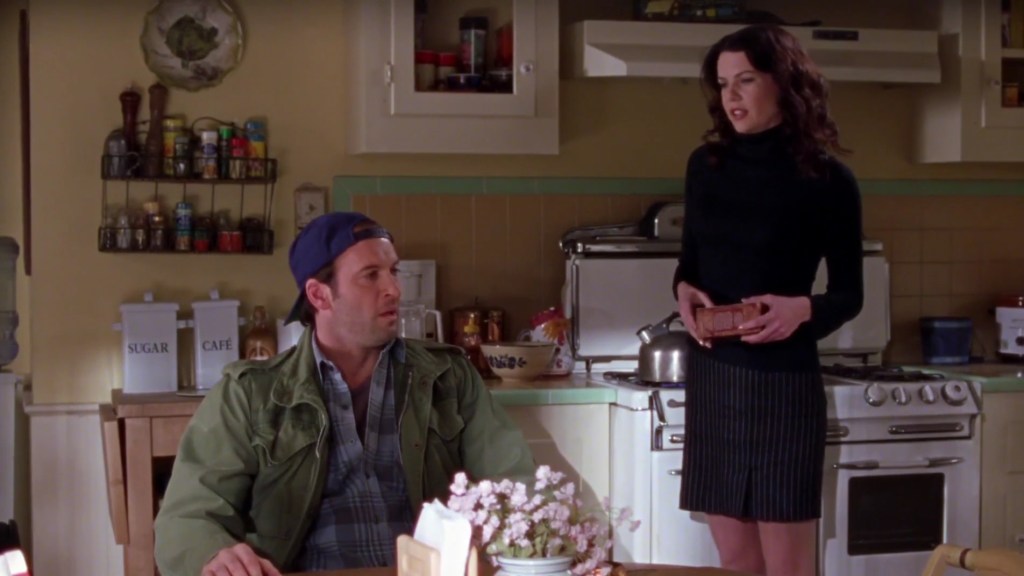 After losing her temper with Jess and letting him know she doesn’t trust him one bit around her daughter, Lorelai tries to find out from Luke if there is anything going on between Jess and Rory. Luke says that Jess doesn’t confide in him, but he thinks it would be great if they got together, because Rory would be good for Jess.