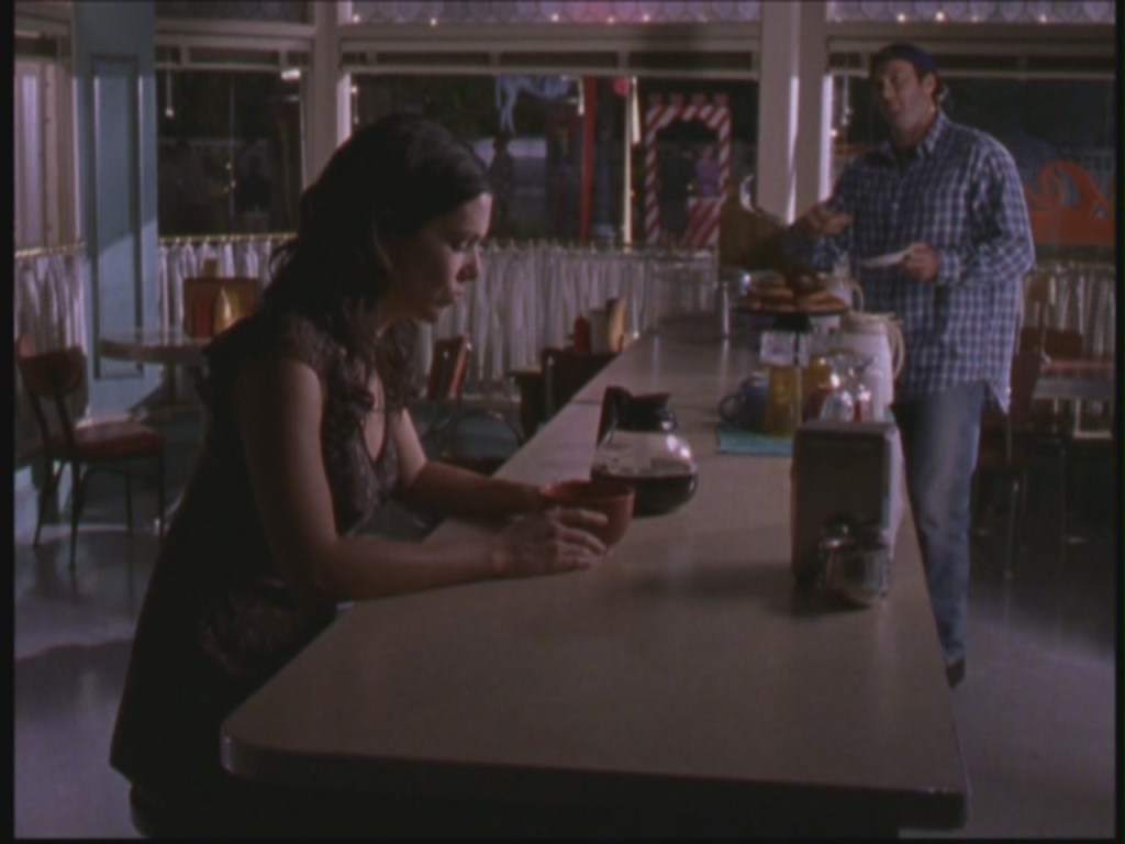 I’m not completely sure what Christopher hopes to gain by seeing Lorelai – presumably to make friends again, with the hopes of one day persuading Lorelai to become his mistress, bed buddy, or booty call.