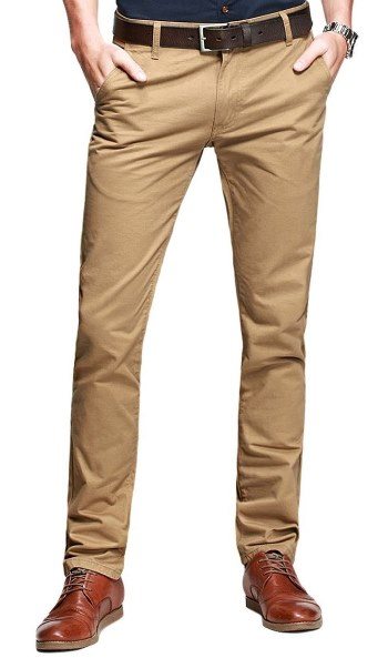 Khakis, another name for chinos, trousers made from a cotton twill (see Cotton Dockers). Developed in the mid-19th century for British and French military uniforms, it has since migrated into civilian wear. Trousers of such a fabric gained popularity in the US when Spanish–American War veterans returned from the Philippines with their twill military trousers. The fabric was originally made in khaki, and this is still the most popular colour.
