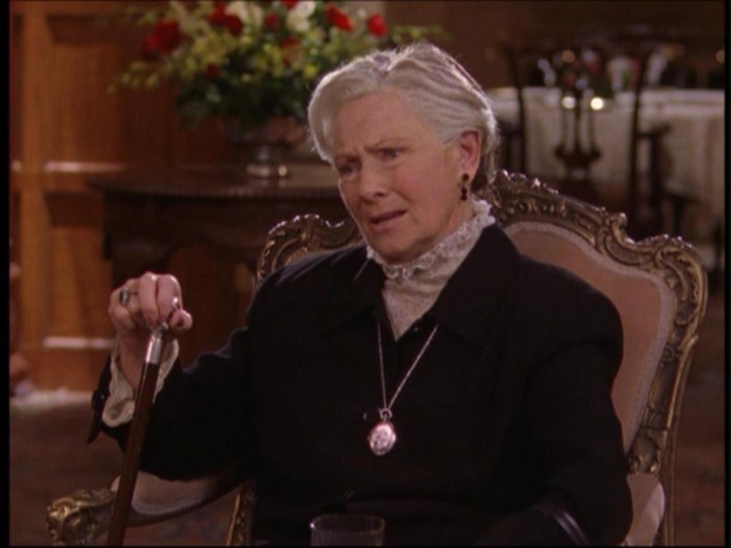 Richard’s mother Trix unexpectedly arrives on Richard’s birthday, both to visit her son and take care of some business. Emily is horrified and begins having a meltdown, but Lorelai decides to support her mother through this crisis. Previously she took a slightly malicious pleasure in watching her grandmother torture her mother – on the last visit, which took place in “The Third Lorelai”, Trix also ended up disgusted with Lorelai, so it seems that she now sees her mother’s point of view a little better.