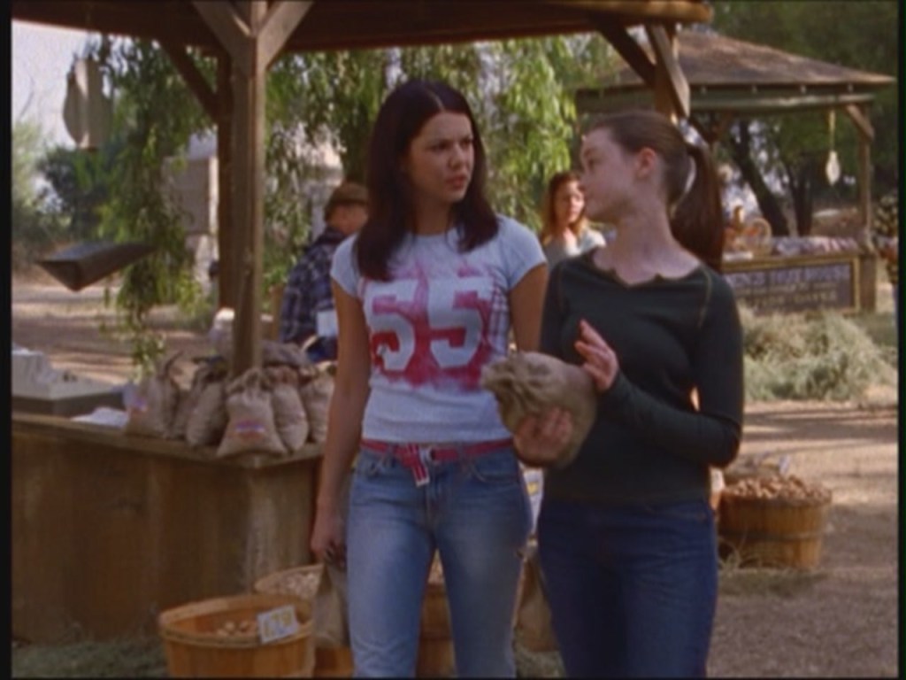 Luke waits for Jess after school, then as they walk home, confronts Jess about taking money from the donation cup for the bridge repair fund at Doose’s Market. Jess tells Luke to leave him alone, and in frustration, Luke pushes Jess off a low bridge (more of a walkway) into a lake. It’s the #1 fan favourite scene in this episode, with good reason.