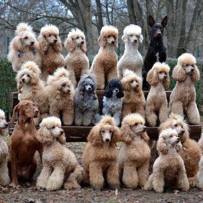 Poodle, a curly-coated game dog which probably originated in Germany, first bred to retrieve wildfowl from water after hunting. It’s German name Pudel means “splash”, and it’s related to the English word puddle.