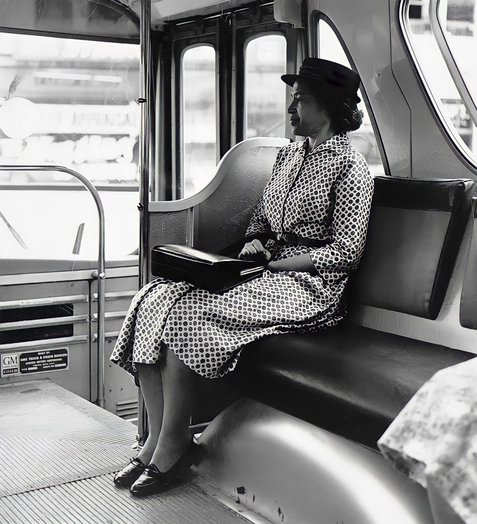 Rosa Parks (1913-2005), an activist in the civil rights movement best known for her pivotal role in the bus boycott in Montgomery, Alabama. In 1955, she refused a bus driver’s order that she vacate her row of seats in the “coloured” section of the bus to make way for white people, once the “white” section was full. Her act of civil disobedience helped inspire the black community to boycott the Montgomery bus company for over a year. In 1956, the courts decided that bus segregation was unconstitutional.