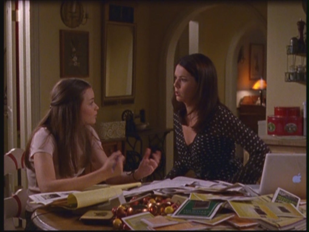 We discover in this episode that Taylor Doose is the scout leader in Stars Hollow. It’s another perplexing incident in regard to time of day – it can’t be any later than about 7:20 am when Lorelai finishes breakfast and goes to the counter, because she still has to drive Rory to school in Hartford, which starts at 8.05 am, and Rory is getting very agitated about being late, because it’s the first day of the school year.