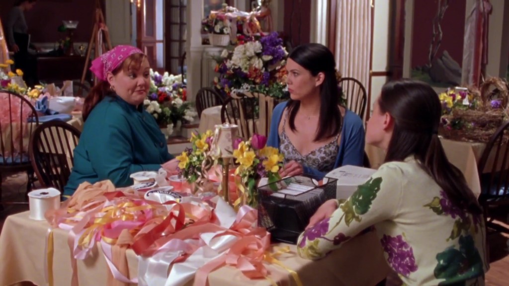 Note that Luke doesn’t seem to have received an invitation to Sookie and Jackson’s wedding. Perhaps Sookie has left him off the guest list in support of her bridesmaid, Lorelai, since he and Lorelai are still in an argument. Or perhaps he turned the invitation down, pleading work as an excuse, since he is running the diner as usual.