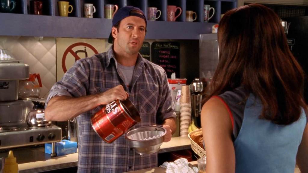 Amy Sherman-Palladino was one of the many people who hated Glitter, which is probably why it gets mentioned here as Lorelai’s joke about the “evil crimes” of Jess. Lorelai doesn’t like Jess, but even she thinks the town is going too far in their treatment of him. She has the good sense not to offer her own issues with Jess (stole beer, talked back to her, prowled around her daughter), as grist for the mill at the meeting.
