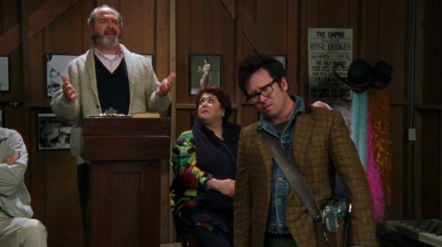 As luck would have it, before they even leave town, they get stuck at the new traffic light, which is timed to come on even if there is no other traffic on the road, and will stay on until the oldest and feeblest person in Stars Hollow can safely get across the road. It’s symbolic of the way that it will always be difficult for them to leave Stars Hollow, even temporarily. There is something in the town which holds them captive to some extent. Scott Patterson’s I’m All In podcast makes note of the fact that while they are trapped at the lights, the door to Luke’s Diner is already open … perhaps a hint of where Lorelai’s future lies.