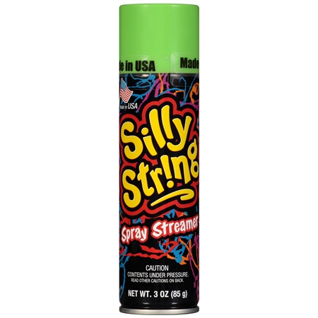 Silly String is a toy consisting of flexible plastic string propelled as liquid from an aerosol can. It was first invented in 1972. Silly String fights are common among children.